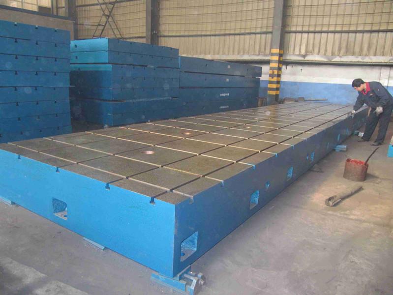 2、工裝平臺(工裝平板)材料及處理:材料為高強(qiáng)度鑄鐵HT200-300,工作面硬度為HB170-240,經(jīng)過兩次人工處理(人工退火600度-700度)