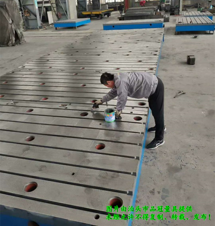大型裝配平臺主要應(yīng)用于動力機(jī)械設(shè)備的裝配和調(diào)試的鑄鐵工作臺,在裝配平臺正面加工有T形槽,可以固定動力機(jī)械設(shè)備,裝配平臺工作面上根據(jù)要求可加工圓孔、U型孔或長孔。