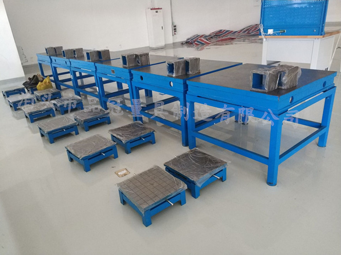 鑄鐵平臺(tái)又稱(chēng)鑄鐵平板,外觀(guān)基本上是箱體式,工作面有長(zhǎng)方形、正方形、圓形等,材料為HT200-300,QT400-600,采用刮研工藝,工作面上可加工V形、T形、U形槽、燕尾槽、圓孔、長(zhǎng)孔等,是用于工件、設(shè)備檢測(cè)、劃線(xiàn)、裝配、焊接、組裝、鉚焊的平面基準(zhǔn)量具。